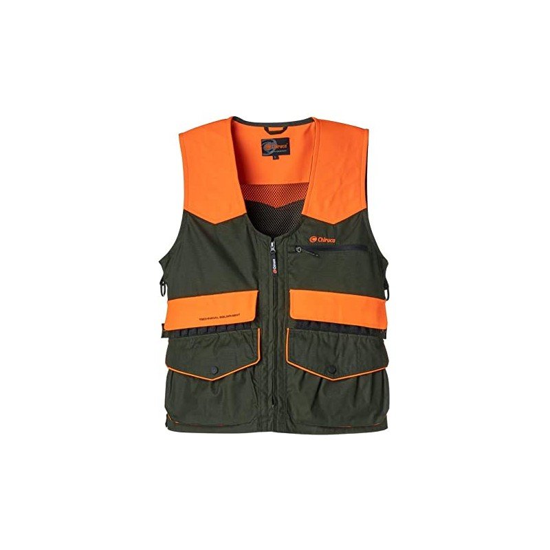 Chaleco de caza técnico con doble bolsillo morral de capacidad extra.