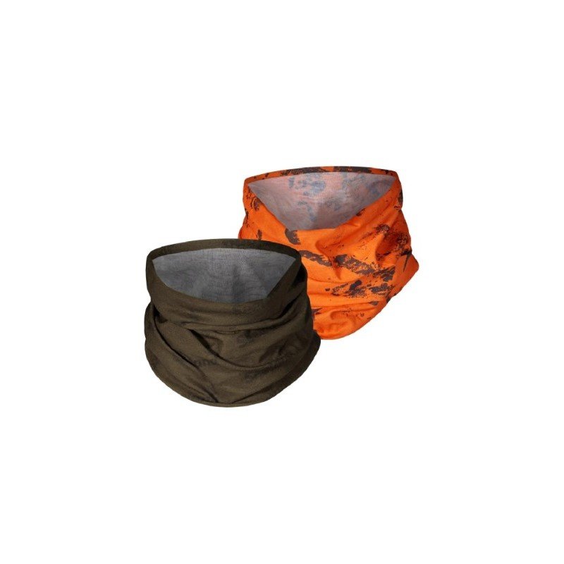 El paquete de 2 polainas para el cuello contiene dos collares antivuelcos, hechos de un material de poliéster suave y elástico. Los collares enrollables son prendas increíbles, con una multitud de usos, como pañuelos, gorros, etc. Uno de los collares enrollables suministrados tiene logotipos impresos de Seeland sobre un fondo verde oscuro tenue. El otro presenta una impresión de camuflaje InVis.