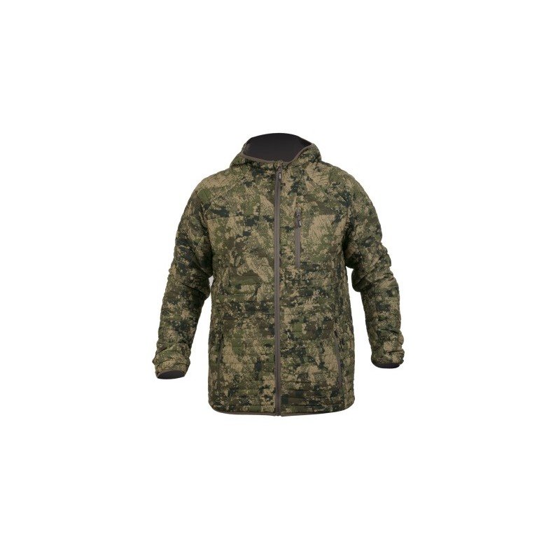 Cálido aislamiento HDI 80. 3 bolsillos con cremallera. Incluye una pequeña bolsa de almacenaje y transporte. Nuestro camuflaje PIXEL FOREST mimetiza la silueta del cazador con el fondo y la convierte en una continuidad uniforme con la naturaleza circundante.