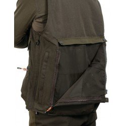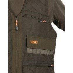 Tejido super resistente rip-stop y forro de malla para mejorar la transpirabilidad. 2 cananas y bolsillos cargo cremallera. Bolsillos cremallera para radio y GPS al pecho. Colores: Verde, Blaze/Verde.