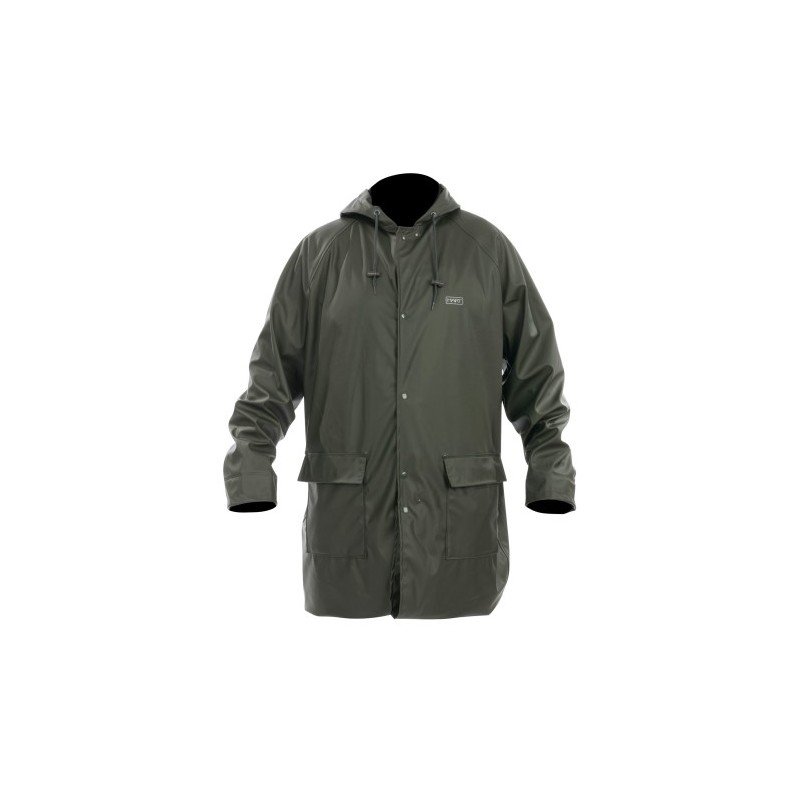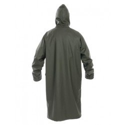 Puedes usarlo como una gabardina sobre tu ropa de caza o de exterior cuando llueva mucho. 100% impermeable debido a su laminado exterior de poliuretano elástico (220grs/m2). Capucha ajustable y puños interiores elásticos para una mejor protección de la lluvia. Cierre frontal con cremallera resistente y presillas. Bolsillos cargo delanteros. La parte inferior de la gabardina se puede doblar y cerrar con botones de presilla para que la longitud total sea tan corta como una chaqueta.